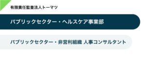 監査法人における非営利・公共領域の取組においては、アドバイザリーサービスなど非監査業務の重要性が年々高まっており、公認会計士以外の専門性やバックグラウンドを持つメンバーが多数参画しています。メンバーには、中央省庁・自治体職員OB、他社コンサルティングファーム出身者、システムエンジニア出身者、医療経営コンサルティング会社出身者等、様々な背景を持つメンバーとのコラボレーションにより多様な業務を経験することで、幅広い選択肢の中からご自身のキャリアや経験値を伸ばしていくことが可能です。