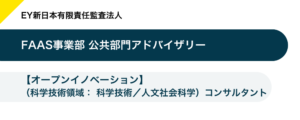 EY新日本有限責任監査法人 公共部門アドバイザリー(科学技術領域:イノベーションエコシステム/社会適応/スタートアップ)コンサルタント