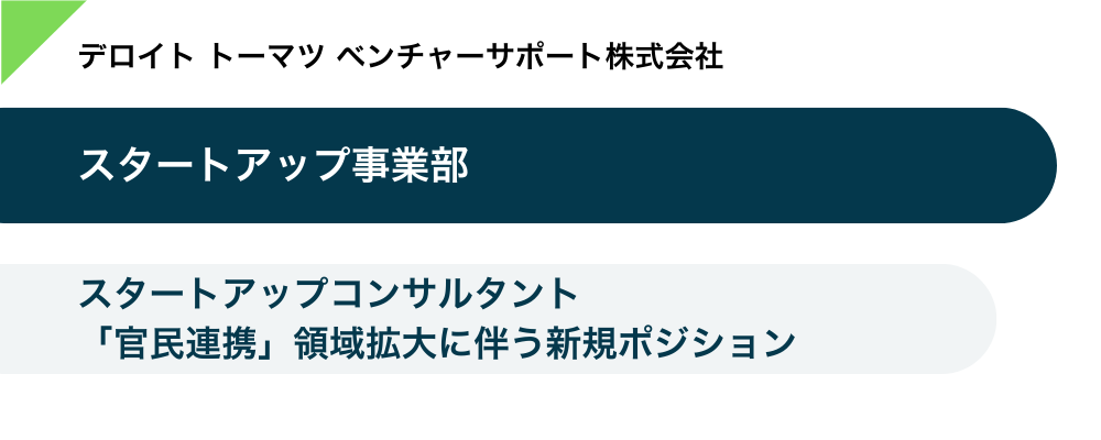 デロイトトーマツベンチャーサポート株式会社 【スタートアップコンサルタント】「官民連携」領域拡大に伴う新規ポジション
