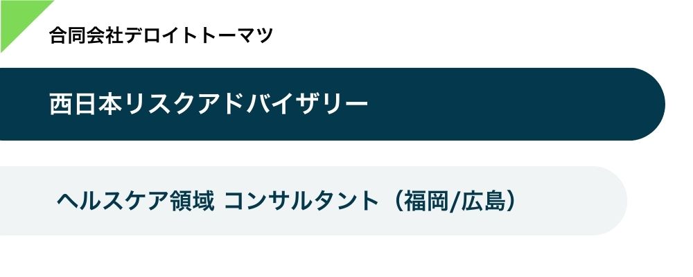 合同会社デロイトトーマツ 【RA/西日本RA】【福岡/広島】 ヘルスケア領域 コンサルタント